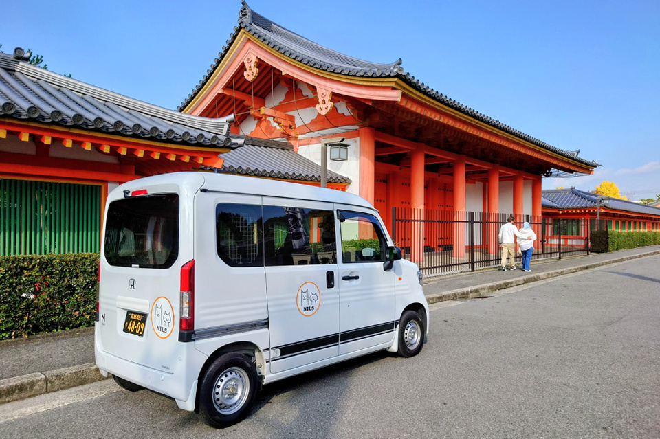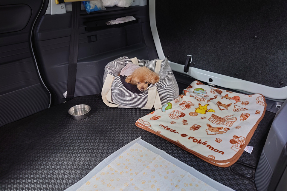 観光先やお食事の間などわんちゃんと一緒にお過ごし頂けない時に現地まで伺い、わんちゃん専用の車の車内にて一時的にわんちゃんをお預かりさせて頂きます。