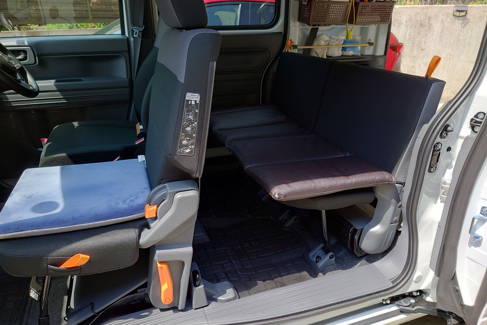 助手席側の扉が大きく開きますのと車の床面が低くなっているので乗り降りがしやすいです。