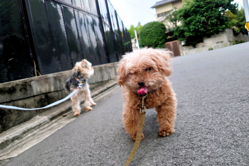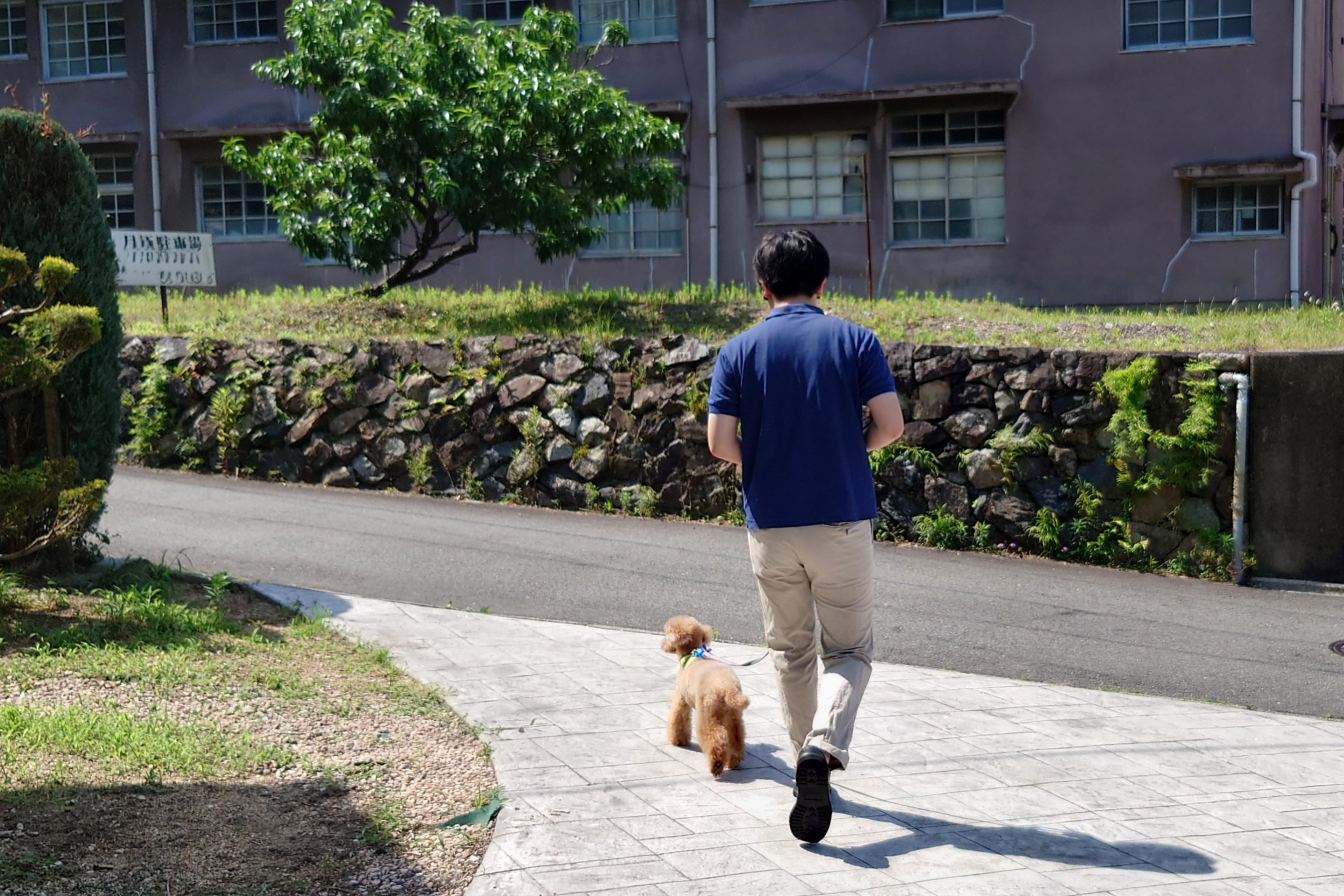 朝のお散歩に出発します。周りを気を付けながらわんちゃんのペースに合わせて歩いてきます♪