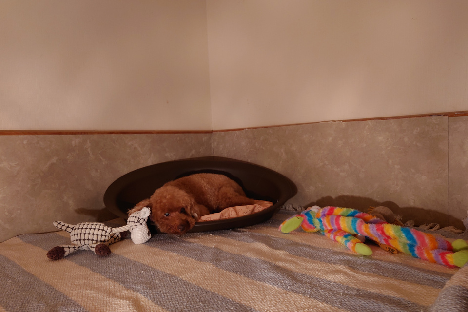 ・環境の変化に慣れていないわんちゃんは、大きなストレスを感じてしまいます。部屋の中をを引っ掻いて爪やパッドや鼻から出血してしまうといったストレスに起因する傷についてはご了承下さい。